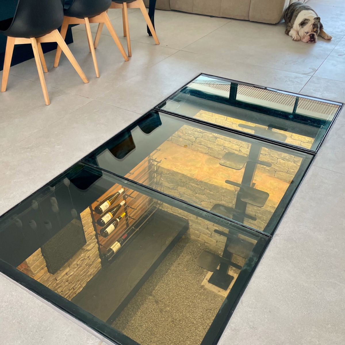 - Fabrication française : Trappe cave en acier et verre, rack à bouteilles et conception de la cave entièrement Made in France, gage de qualité et de savoir-faire.